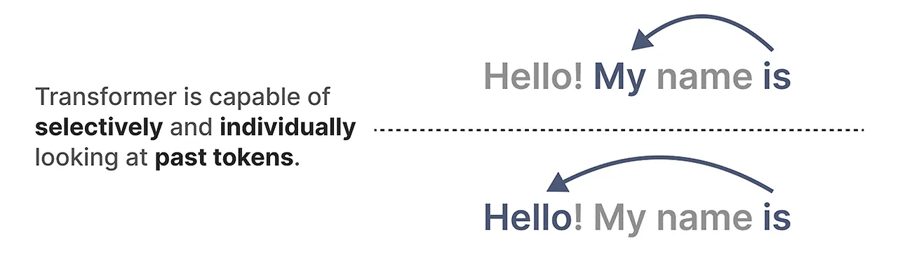 self-attention은 이 모델들이 작동하는 주요 이유 중 하나라고 배웠습니다. 전체 시퀀스에 대한 압축되지 않은 관점을 제공하여 훈련 속도를 빠르게 해주죠. 각 토큰은 이전의 토큰과 비교하여 행렬을 생성하게 됩니다. 행렬의 각 가중치는 토큰 쌍이 서로 얼마나 관련이 있는지에 의해 결정됩니다. 이는 병렬 처리를 가능하게 하여 훈련 속도를 크게 높일 수 있는 것이죠.